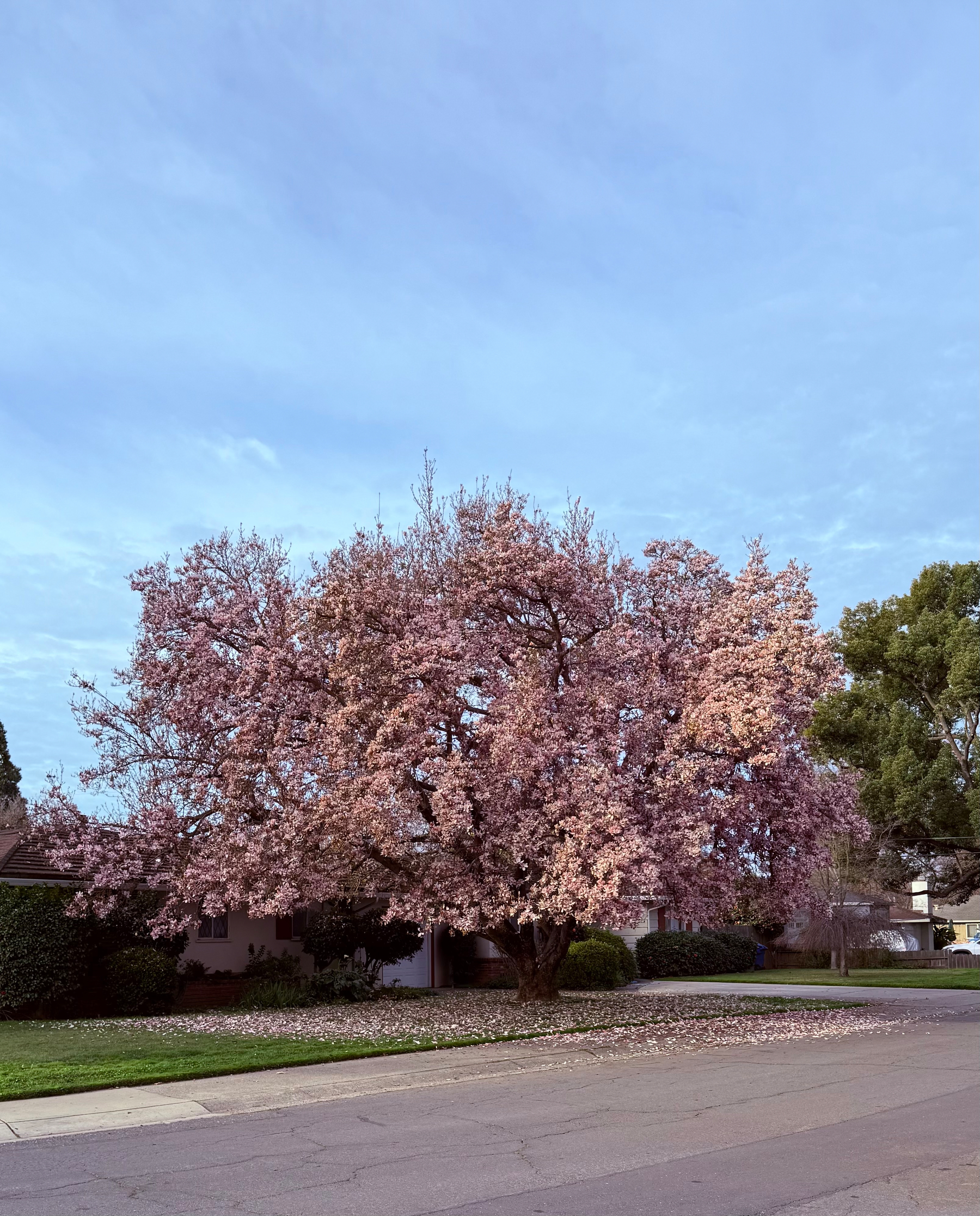 This beautiful pink magnolia tree from Monday’s walk before the rain came this week. 🌸